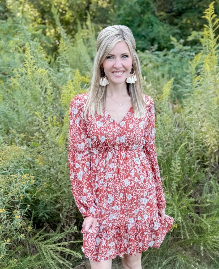"Dare to stand out in the Oak & Meadow Dress! With its bold puff sleeves, striking floral print, and bohemian ruffle trim, this dress exudes an adventurous and unique style. The v-neckline adds an alluring touch to complete the look. Make a statement and embrace your individuality!"