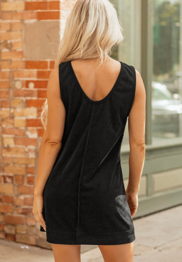 Elevate your holiday style with the Silent Night Corduroy Mini Dress. This sleeveless dress features front pockets, perfect for keeping your essentials close while you celebrate. Pair it with a cozy sweater underneath or a chic turtleneck for a versatile and stylish look. Get ready to turn heads and make a statement this season!
