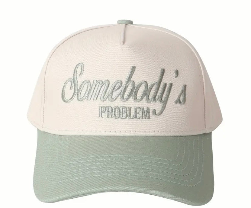 Add a touch of humor to your look with the "Somebody's Problem" trucker hat. Its playful phrase makes a bold statement wherever you go. Perfect for casual outings, this hat combines fun and functionality in one easy-to-wear accessory.